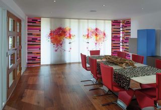 La sfida principale in questo progetto residenziale era lavorare a stretto contatto con il cliente, molto chiaro e deciso in merito ai propri desideri. Ampie immagini dovevano essere stampate su vaste aree di tessuto, con un'attenzione particolare alle sovrapposizioni dei pannelli. Il tessuto doveva quindi essere scelto con attenzione per consentire la stampa di immagini di altissima qualità con un'attenzione alla gestione della luce e del riverbero che risultava dalle ampie superfici vetrate. Il tessuto Silent Gliss Multi Shadow per la sua struttura, considerata ideale per la stampa digitale ed il taglio laser.