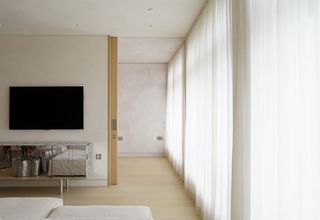 In collaborazione con Bont/Design, Silent Gliss ha fornito binari e tende per dare forma a questa visione. Delicate e discrete, le tende Swiss Pleat in tessuti leggeri Polyflax e Someo, montate su binari SG 6465 con i brevettati scivoli silenziosi a due componenti, hanno aggiunto eleganza, contribuendo a creare un interno minimalista e sognante.